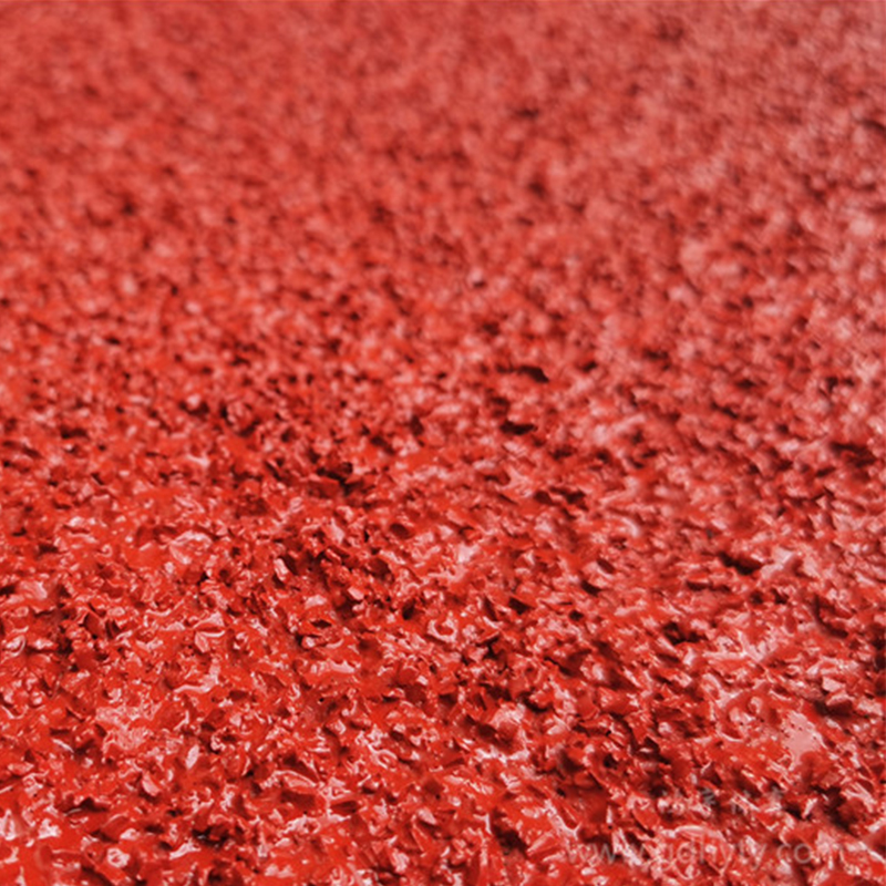產品在設計過程中充分考慮了運動員的生物力學需要:立體網狀的內部結構,使跑道具有優良的彈力、強度、韌性及減震效果,有效減少了運動員的肌肉疲勞和微損傷;成型產品由凹凸圖案的上、下兩層復合而成,上層為彩色復合橡膠,具有長久抵御紫外光及多變氣候、氣象條件影響的性能,凹凸圖案面層設計,具有優良的防滑、抗尖釘、抗磨損、抗反光作用。下層為黑色復合彈性材料,凹凸圖案底層設計,在最大限度地增加跑道材料與基面的錨固密實程度同時,利用密閉在孔洞中的空氣在受到撞擊的瞬間所產生的反彈力傳導給運動員,從而有效地降低了運動時所受到的沖擊。